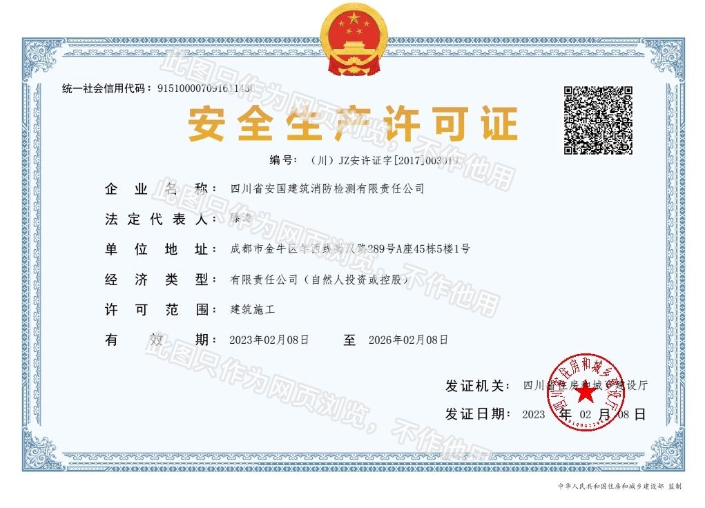 四川省安國建筑消防檢測有限責任公司,成立于1998年,經(jīng)四川省公安消防總隊批準,工商部門注冊的獨立法人單位。